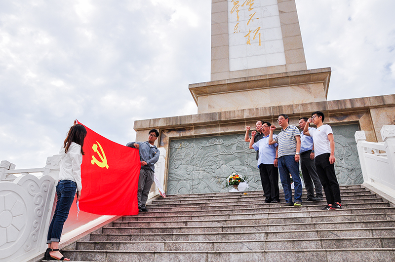 黨員代表為烈士敬獻了花籃,集體重溫了入黨誓詞,并在橫幅上鄭重的簽上了自己的名字。沿著陵園,大家不時駐足觀看,墓間蒼勁常青的高大松柏莊嚴肅穆,仿佛在守衛(wèi)著長眠于此的革命烈士,守望著那一段浴血奮戰(zhàn)的悲壯歷史。