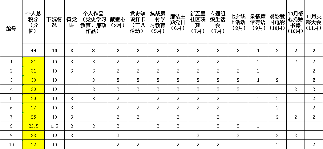 圖:機(jī)關(guān)黨支部積分排名