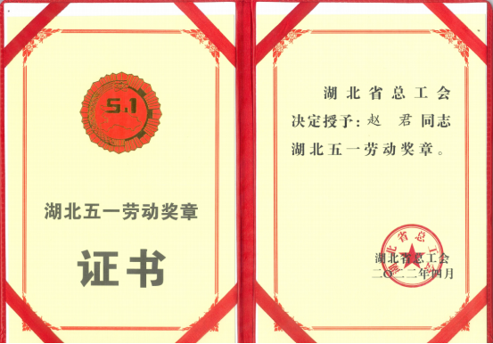 2022年4月,趙君被授予湖北五一勞動(dòng)獎(jiǎng)?wù)?/span>
