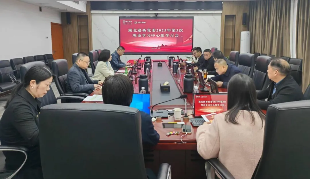 3月12日,湖北路橋黨委召開2025年第3次理論學習中心組學習會,專題學習湖北省“干部素質(zhì)提升年”實施的“六大行動”。公司黨委書記、董事長潘新平主持會議并講話,黨委班子成員結(jié)合公司實際,交流思想認識和學習體會。
