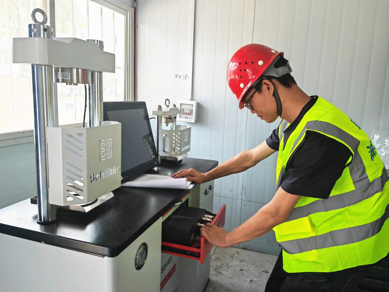 圖:李袁杰在檢查標(biāo)志基礎(chǔ)外觀尺寸