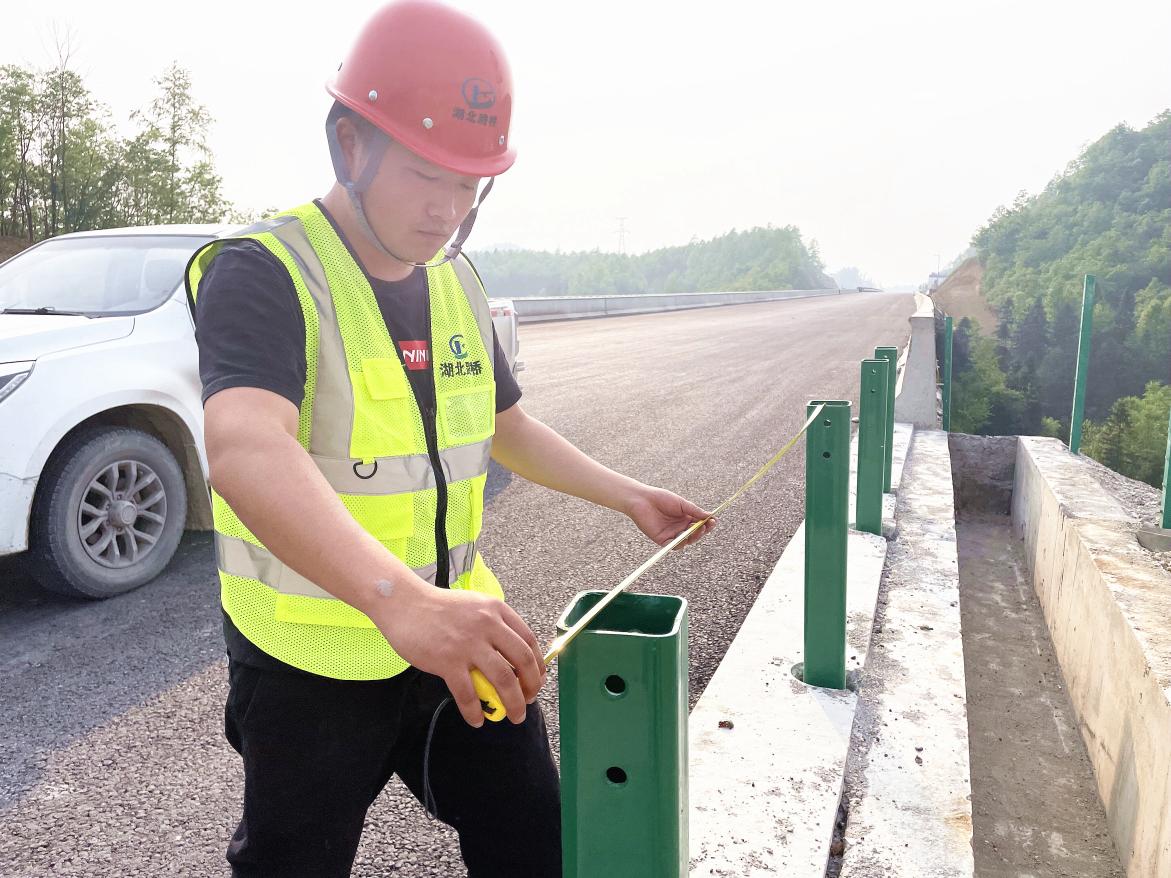圖:李袁杰在檢查護(hù)欄立柱中距