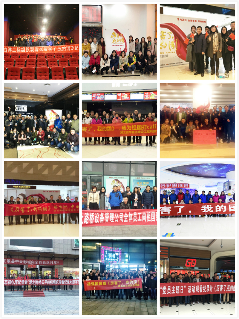春天,洋溢著美,散發(fā)著溫馨,激蕩著人們心中的力量。陽春3月,路橋集團(tuán)黨委組織近400余名黨員干部和骨干員工觀看了大型紀(jì)錄片《厲害了我的國》,為偉大祖國點(diǎn)贊。