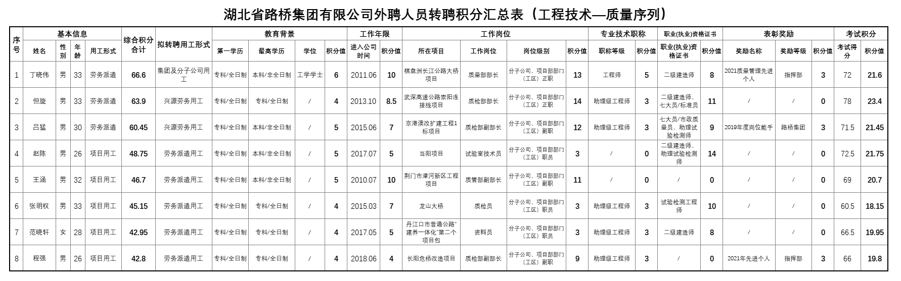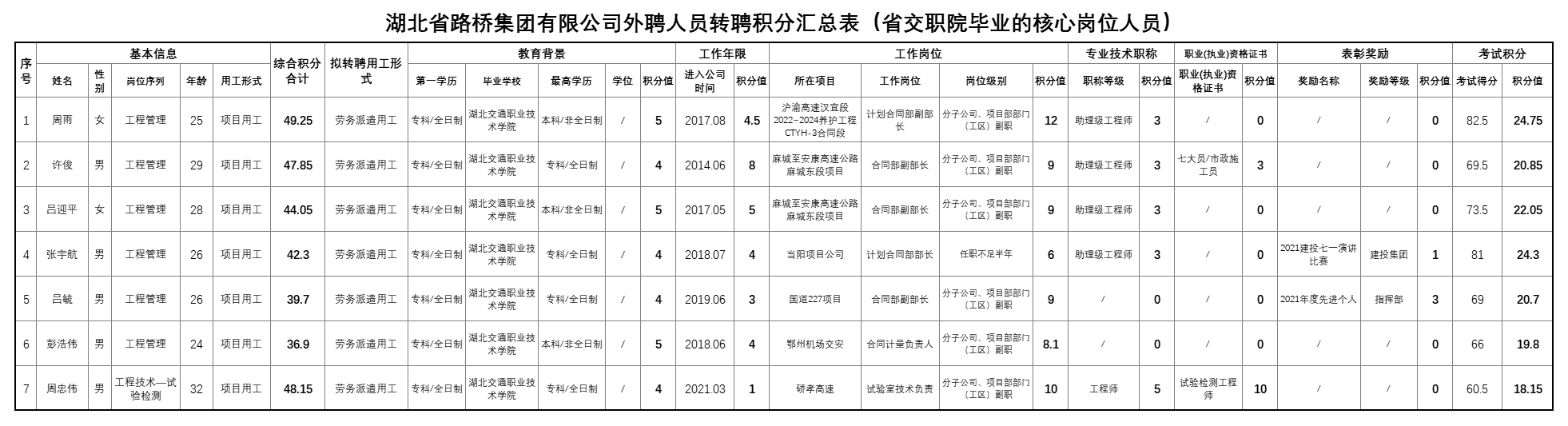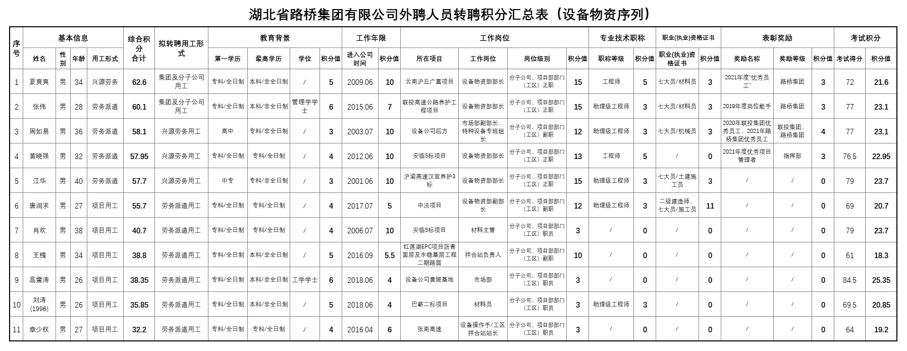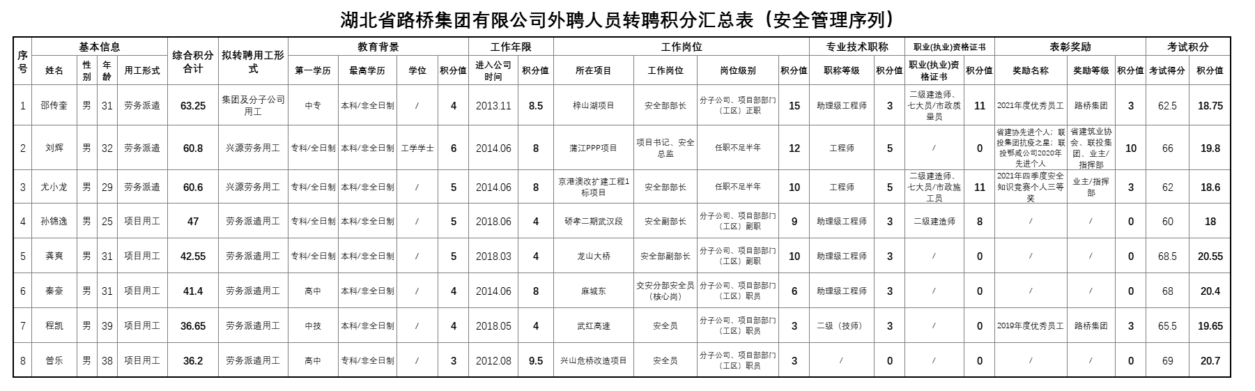 湖北省路橋集團(tuán)有限公司2022年擬轉(zhuǎn)聘人員公示