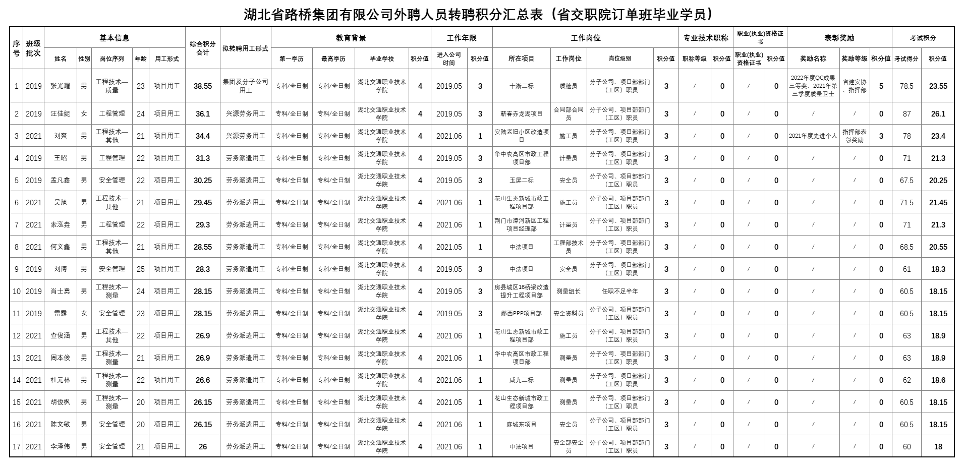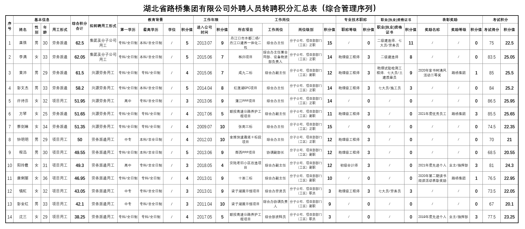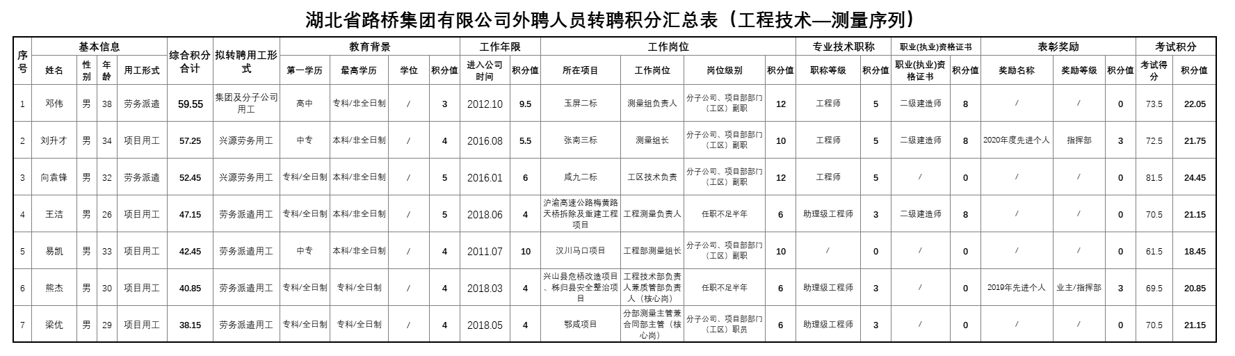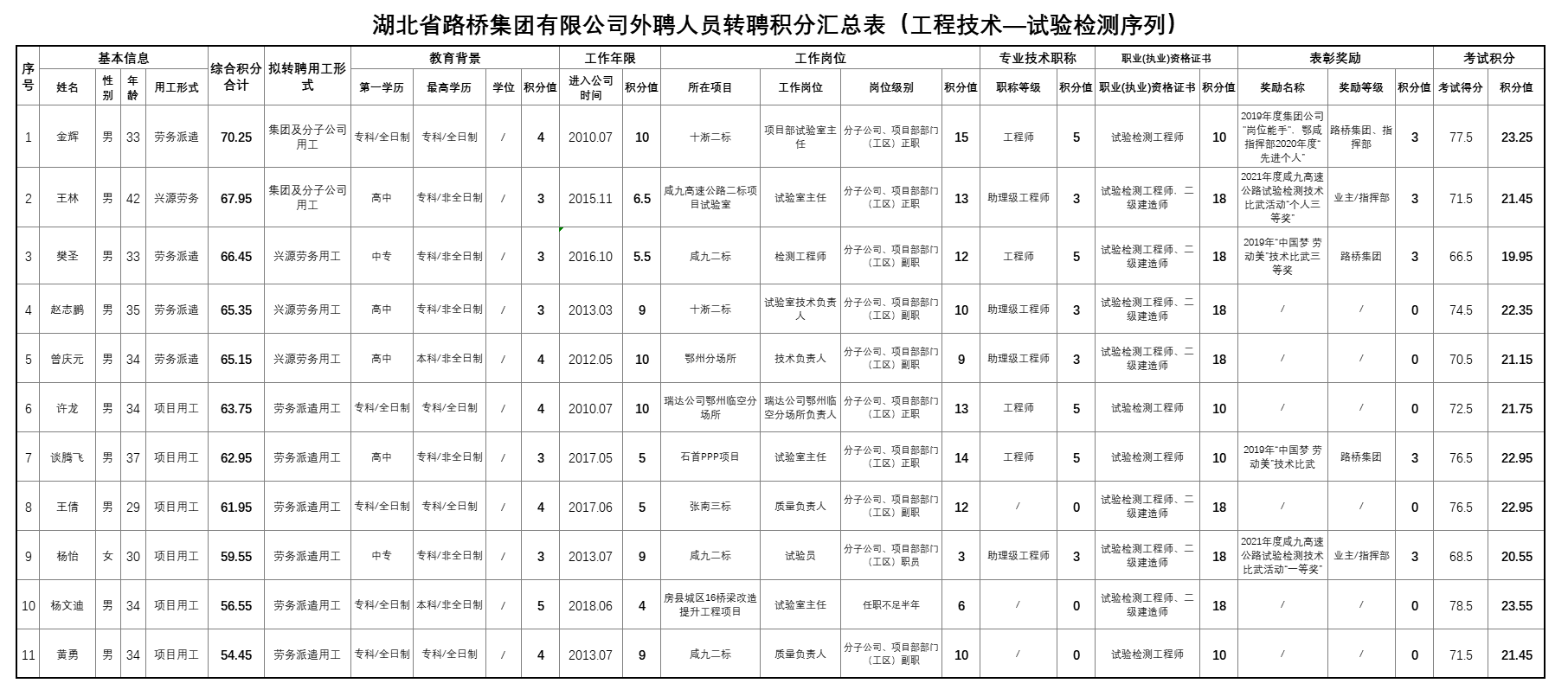 湖北省路橋集團(tuán)有限公司2022年擬轉(zhuǎn)聘人員公示