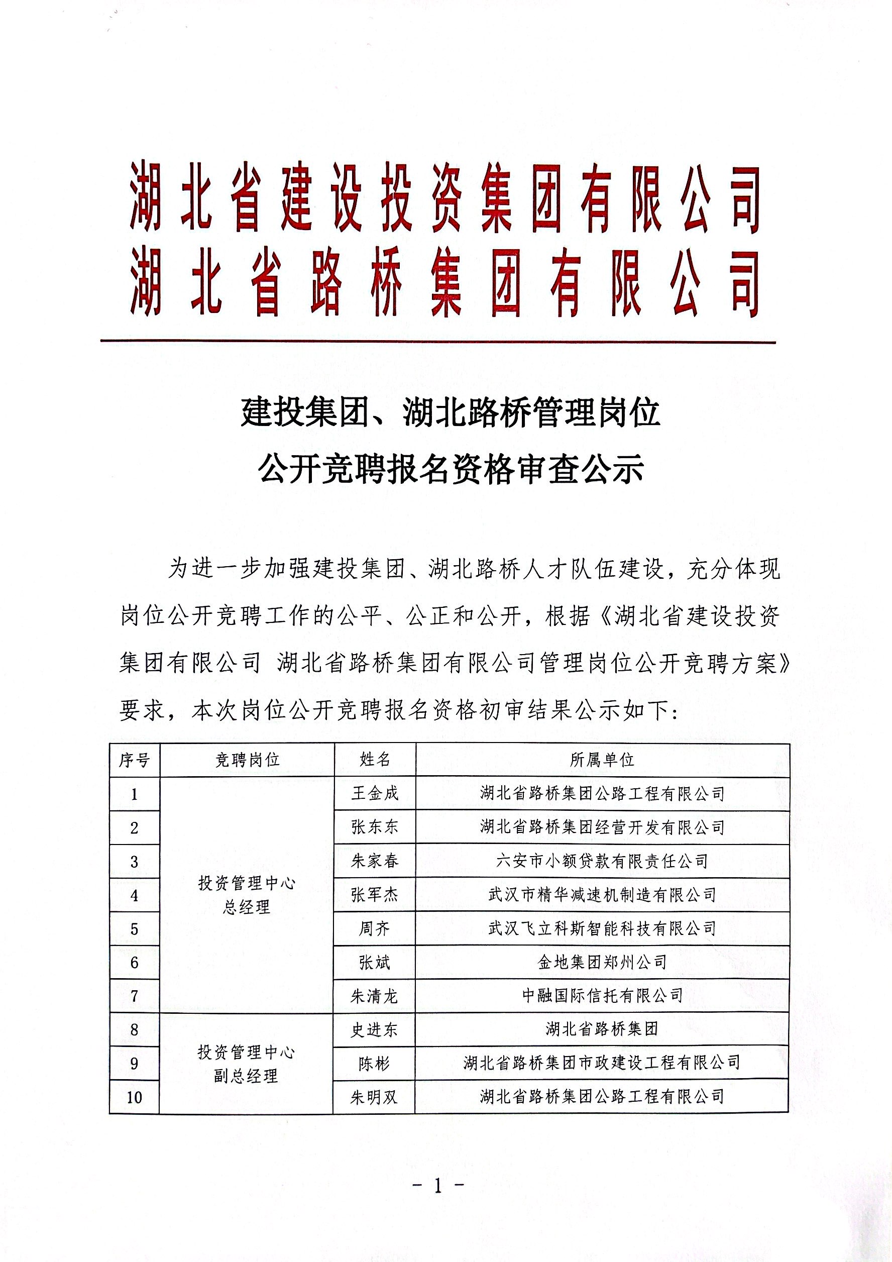 建投集團(tuán)、湖北路橋管理崗位公開(kāi)競(jìng)聘報(bào)名資格審查公示