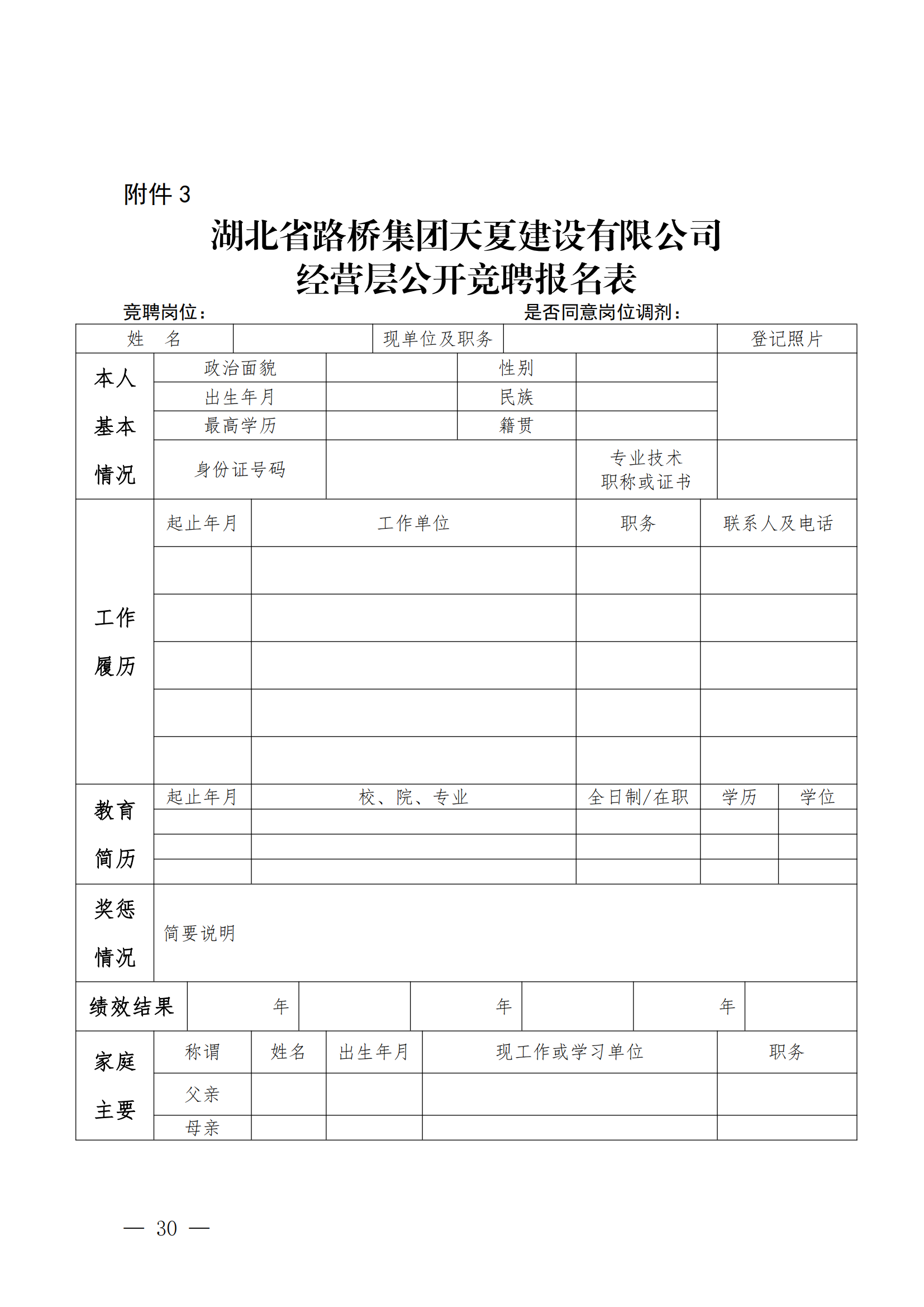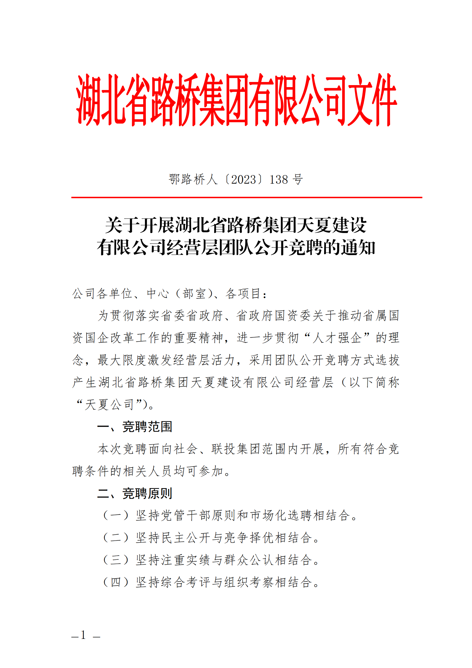 關(guān)于開展湖北省路橋集團天夏建設(shè)有限公司經(jīng)營層團隊公開競聘的通知