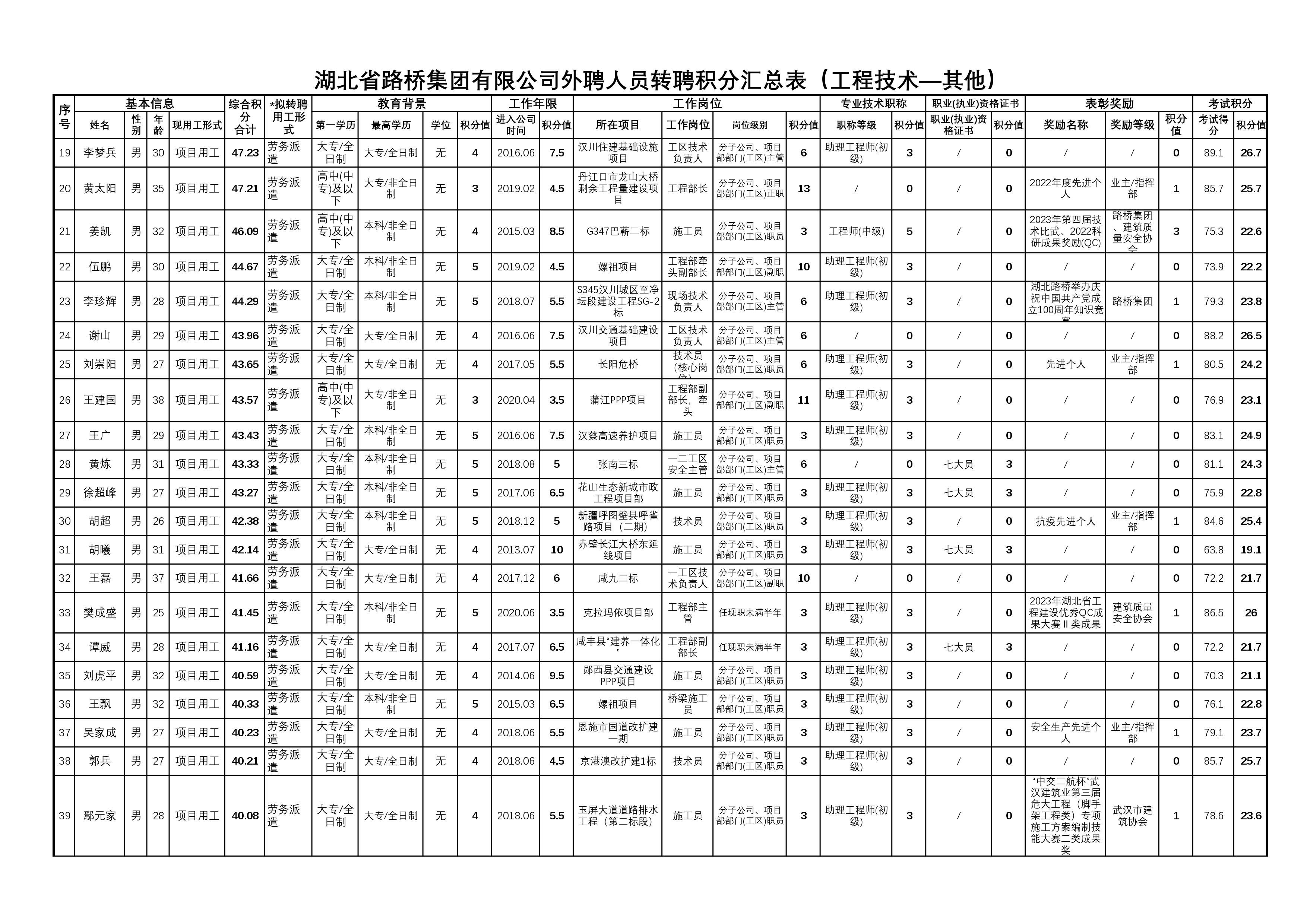 湖北省路橋集團有限公司2023年度擬轉聘人員補充公示
