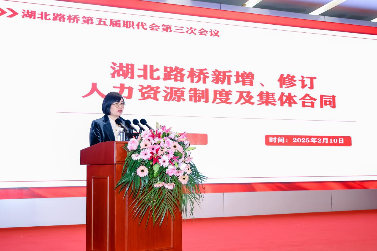 會議聽取和審議通過了《湖北路橋2024年工作報告》《湖北路橋2024年度財務(wù)決算及2025年度財務(wù)預(yù)算報告》《湖北省路橋集團有限公司職工代表大會實施辦法(試行)》等職代會提案。